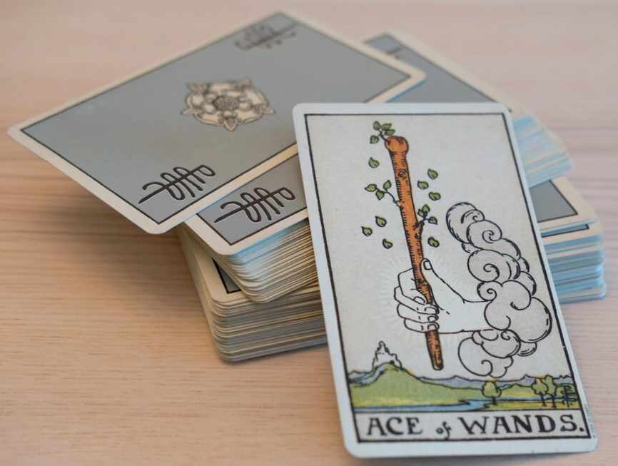 Pull a Tarot card from my website here or your own Smith-Waite Tarot deck and overlay it, or line it up with, the Ace of Wands. This shows you the potential of the idea, any issues with it and any natural assets. Pamela Colman Smith used tree branches to show future books, periodicals, scripts, speeches and so on. In her day, when this card was created in 1909, we lived in a paper world. Today it’s digital. Which card, overlaid with this or next to it, shows your story, starting now?