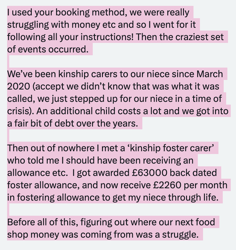 This – just in – from November 2024. A place on a Master of Arts degree course. And a large amount of money, for a woman who was struggling.