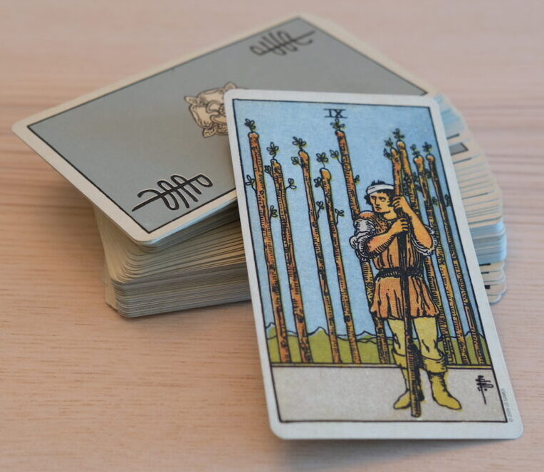 Ironically the others in the group, or community, have remarkably similar thoughts to him. Those wands, rods or staves are rather similar. Wands are tree branches, symbols of paper mills, which in Pamela Colman Smith’s day, produced newspapers, posters and journals. Books and scripts. Today it’s life online.