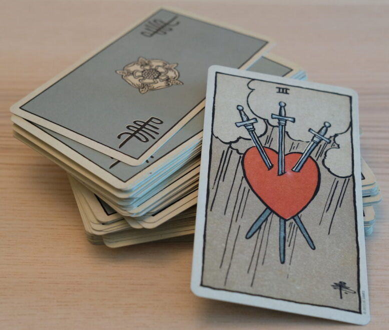 Three can be very difficult when the heart is involved. A love triangle, usually, with two partners in a painful situation with a third person. Perhaps an ex who will not go away, a mistress, or a romantic rival. The perfect cure is in the extraction of all three swords, at once, to promote heart healing. An imperfect cure is for you to pull out. You may move. You may stay, physically, but emotionally and mentally, withdraw from what is clearly an extremely uncomfortable and hurtful situation between yourself, him and her. Or yourself, her and her. Or yourself, him and him…it goes on.