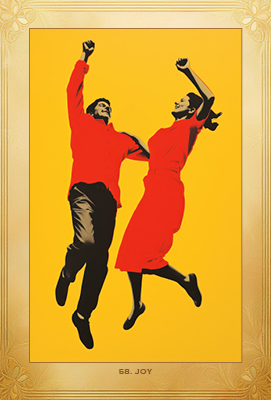 Happiness and delight are shown by this hexagram. We think about jumping for joy, but also ‘Kiss the joy as it flies.’ This I Ching hexagram is a nice simple answer to any question. ‘What will the result be, over the next 10 years, of my marriage to this man?’ If you receive Joy, you may have no further questions. Share the joy when you receive this hexagram. There is no point in feeling all the highs alone. Well, you can, but why not invite others to be part of this bursting happiness? The open lake imagery of this card is different things to different people. Water after a thirsty journey. The resources for a new village. Ample trout. The fun of boating. Swimming. The key to this ancient hexagram is that everything is open and there to be enjoyed. A lake also runs deep. There is more to this than surface appearances; there is more to gain here, perhaps.