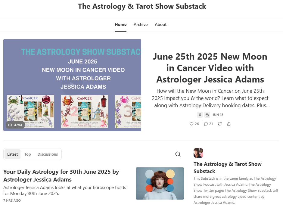 If you are interested in being part of a more social group involved with Tarot and astrology, find me on Substack, Bluesky and Twitter/X.