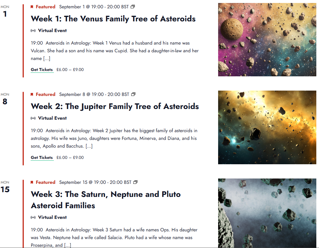 Come along to three Zoom sessions about the asteroids and other heavenly bodies in your astrology chart next.