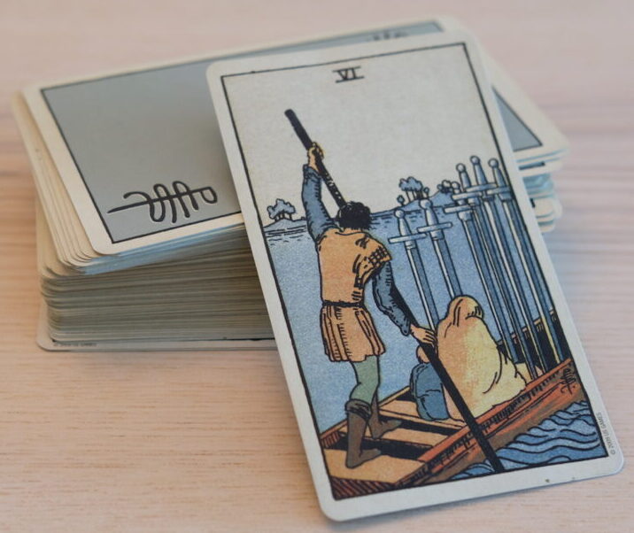 The Tarot card for you this week is the Six of Swords. The future (the destination) has no colour. It is for the woman and child to colour in. Thus, the idea of a blank canvas. The distant shore reveals nothing. Pamela left it almost white. In time, other Tarot cards may show the possibilities and potential of the new hometown. The new homeland. It is there to be painted.